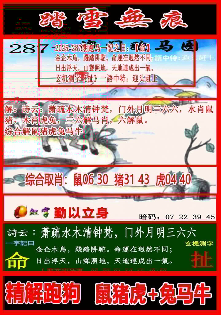 279期 今期鸡鼠虎出特,日行北陆泠光浮开兔27 |